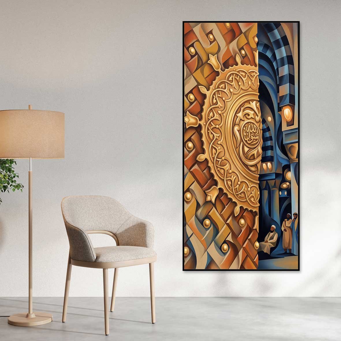 لوحة جدارية بتصميم مميز ، مطبوعة على أفخر أنواع قماش الكانفاس اللامع ، مثبت على إطار خشبي مخفي ، متوفرة للعميل بإطار فاخر ملون ، وبدون إطار خارجي فقط قماش مشدود على خشب سويدي معالج