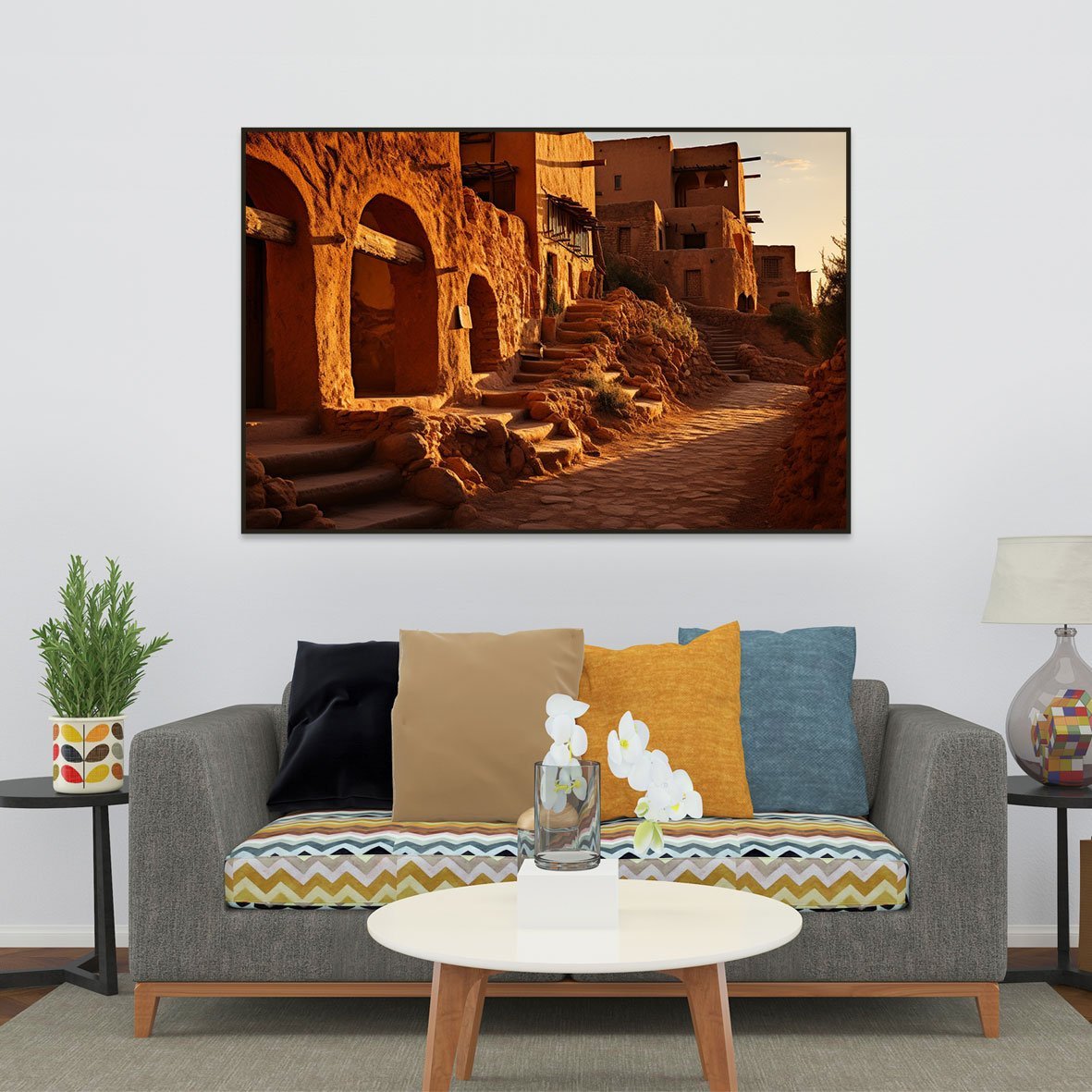 لوحة جدارية بتصميم مميز ، مطبوعة على أفخر أنواع قماش الكانفاس اللامع ، مثبت على إطار خشبي مخفي ، متوفرة للعميل بإطار فاخر ملون ، وبدون إطار خارجي فقط قماش مشدود على خشب سويدي معالج